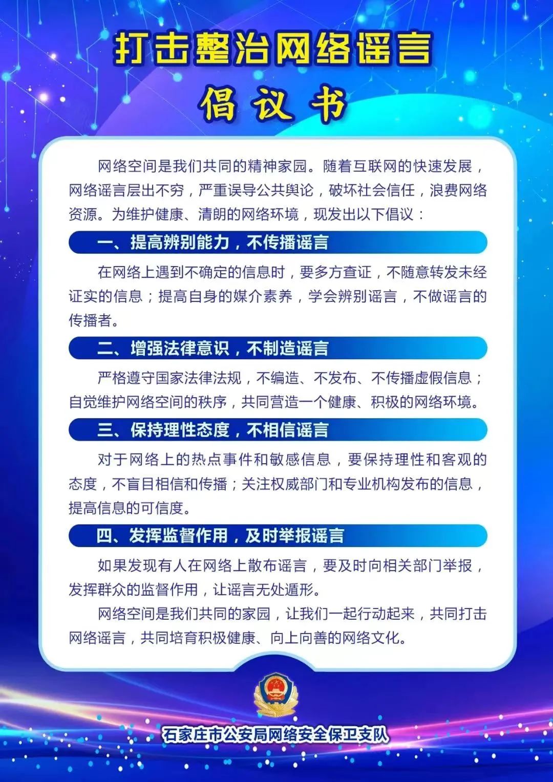 打擊整治網絡謠言倡議(yì)書(shū)!